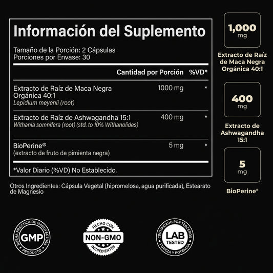 AHORRAR 50%Maca Negra Orgánica + Ashwagandha